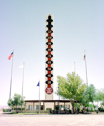 建造于1991年的高达134英尺 的温度计,用来纪念1913年死亡之谷华氏134度的高温