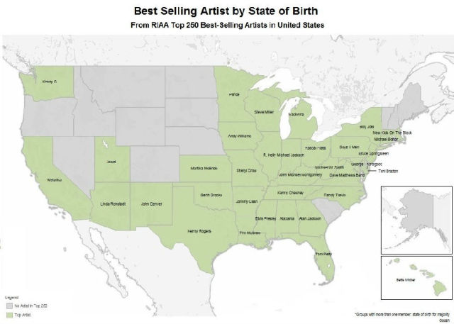 在加州最出名的音乐人是Bonobo,与之相邻的亚利桑那州是林肯公园。