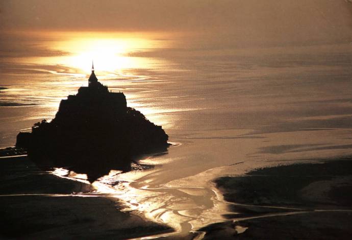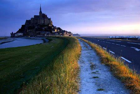 被19世纪法国文学大师雨果称为“海上金字塔”的圣米歇尔山耸立在法国北部,诺曼底及布列塔尼之间的沙地上。山的面积很小,直径只有1公里,山头建有比它高出近两倍的修道院。这是个神秘的地方,潮涨,它像个孤岛,冷漠高傲而深不可测;潮退,它变得平易近人,但那高耸入云的教堂仍有种让人窒息的感觉。而山,就这样游走于“陆地”和“海岛”的两种身分间,年复一年,日复一日,循环了近千年。