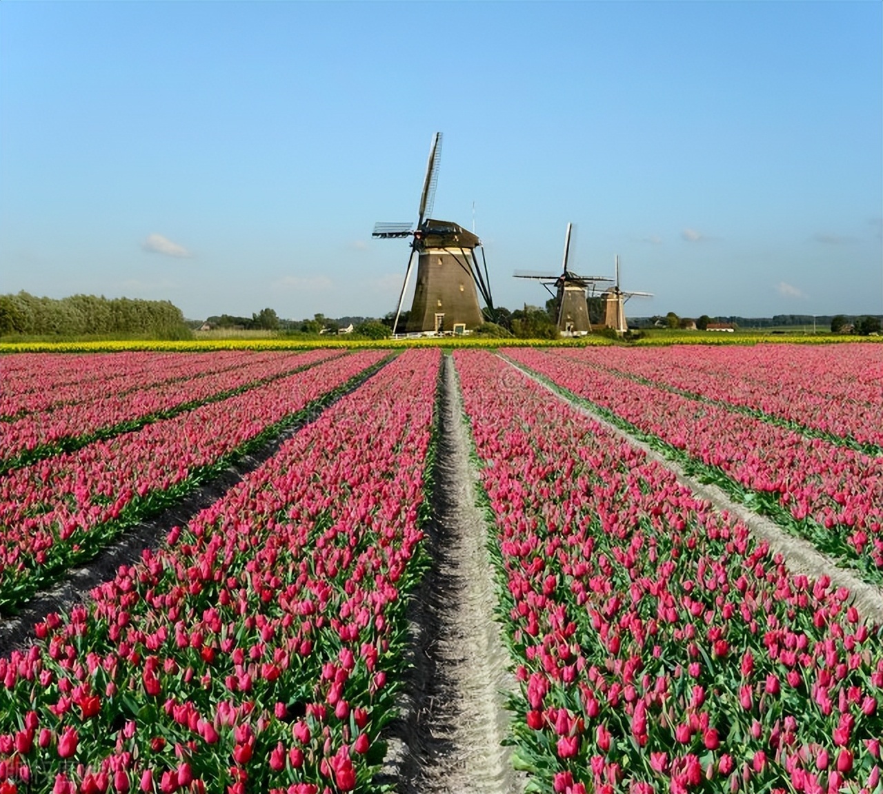 荷兰是欧洲的花园,鲜花之国,荷兰是种植葱属植物的全球领袖,有大约44430英亩鲜花,花卉产量占荷兰农业总产量的3.5%。而郁金香是其中种植最广泛的花卉,也是荷兰的国花,是美好、庄严、华贵和成功的象征。