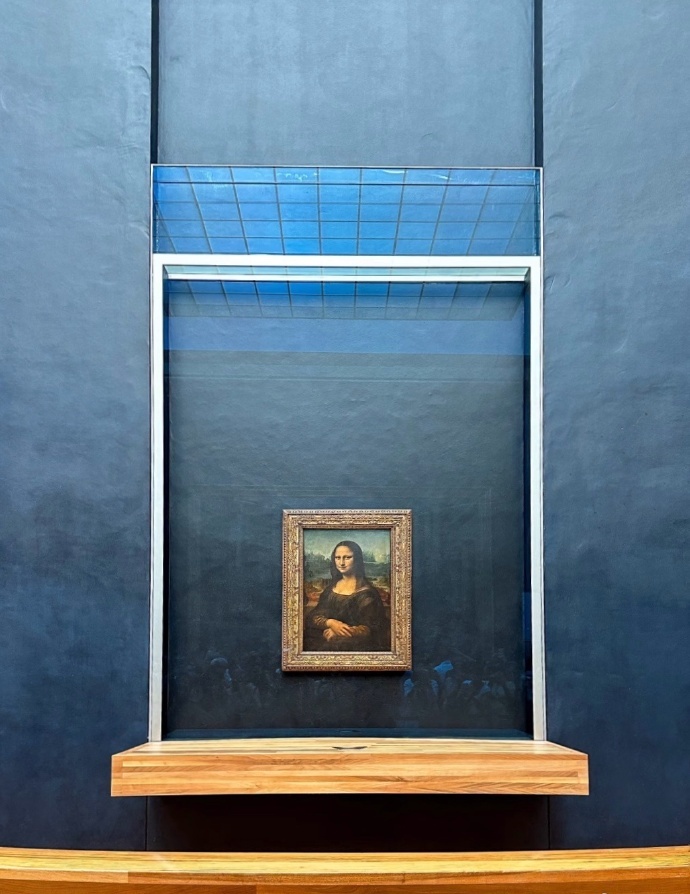 卢浮宫绘画馆所收藏的绘画之全、之珍贵是世界上各艺术馆不能比拟的。绘画馆共有35个展厅,2200多件展品,其中三分之二是法国画家的作品,三分之一来自外国画家,14~19世纪的各种画派的作品均有展出。比较杰出的作品有:富凯的《查理七世像》(15世纪)、达·芬奇的《岩间圣母》(16世纪)、拉斐尔的《美丽的园丁》(16世纪)、勒南的《农家》(17世纪)、里戈的《国王路易十四像》(18世纪)、路易·达维德的《拿破仑一世在巴黎圣母院加冕大典》(19世纪)、德拉克鲁瓦的《肖邦像》(19世纪)、安格尔的《土耳其浴室》(19世纪)等。 有所有绘画作品中,最为杰出、最受人瞩目的自然是达·芬奇在1503年完成的不朽杰作《蒙娜丽莎》。《蒙娜丽莎》被置放在卢浮宫二楼中间的一个大厅中,外面用玻璃罩着,显然是特别的保护。玻璃罩周围射出的柔和的灯光,足以使观众看清画面的各个细节。《蒙娜丽莎》又称《永恒的微笑》,被认为是西欧画史上首幅侧重心理描写的作品。蒙娜丽莎端庄俊秀,脸上含着深沉、温和的微笑。那微笑有时让你觉得温文尔雅,令人陶醉;有时仿佛内含哀愁,似显凄楚;有时又略呈揶揄之状,虽则美丽动人却又有点不可接近……更妙的在于,在这幅名画之前,不论你从哪个角度看,她那温和的目光总是微笑地注视着你,生动异常,仿佛她就在你身边。