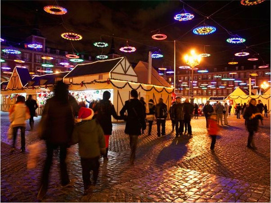 马约尔广场上的节日彩灯优美但又不显得浮华。马德里假日市场的历史可以追溯到18世纪中期,是基督降生场景中人物的主要来源。活动的高潮是主显节前夜(1月5日)宏伟壮观的游行。