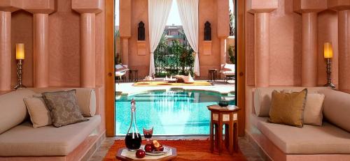 阿曼杰纳(Amanjena)在当地语言中的意思为“平和的天堂”,这一名称也将酒店的特征勾画得惟妙惟肖。入口处极富热带风情的喷泉,再加上两旁点缀的棕榈树和橄榄树,俨然一派人间天堂的景象。玫瑰色的墙壁中穿插着开放式的建筑,建筑配以奇特图案的花纹,并且每一间豪华套房都拥有自己的中央供暖游泳池,甚至躺在游泳池外边享受非洲特有的日光浴也是一种无上的享受。当然幽雅的环境也意味着不菲的价格,标准间每晚收费800美元,再加上20%的附加服务费,而带有私人游泳池的豪华套间每晚要1350美元,同时还有20%的服务附加费。