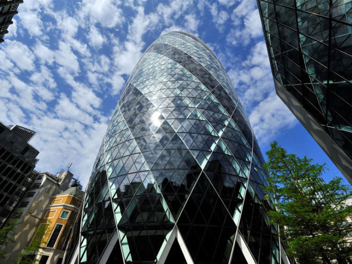 小黃瓜因其独特的圆锥形而得名,这座办公大楼位于伦敦金融区圣玛丽斧街30号,于2004年投入使用。虽然大厦是圆锥形,但是整栋大厦只有一块弯曲的透镜状的玻璃用来覆盖顶部。大厦高600英尺(90米),有40层,内部进驻的企业是保险公司和其他金融公司。