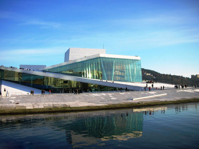 于2008年投入使用的挪威奥斯陆歌剧院就像一座冰山一样在奥斯陆拔地而起。倾斜的大理石天台对市民开放,下面是一个有1350个座位的礼堂。奥斯陆歌剧院因其当代的建筑风格而荣获2009年度欧洲建筑密斯·凡·德·罗奖。