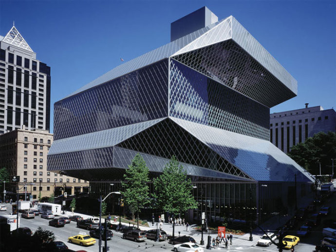 2004 年投入使用的西雅图中央图书馆是由荷兰建筑师雷姆·库哈斯设计的。该图书馆是美国众多喜好读书者的天堂,也是美国最有权威的图书馆之一。其钢加玻璃的外部 既是现代建筑又是未来派建筑的风格,内部还有一些秘密的读书区域。而且游人还可以在这个11层的建筑中一睹皮吉特海峡的风采。