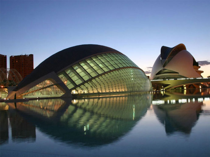 位于西班牙瓦伦西亚的艺术及科学之城中有科学博物馆、剧院、表演厅和一个水族馆。其教育和娱乐相结合的风格是由西班牙建筑师圣地亚哥·卡拉特拉瓦设计的。