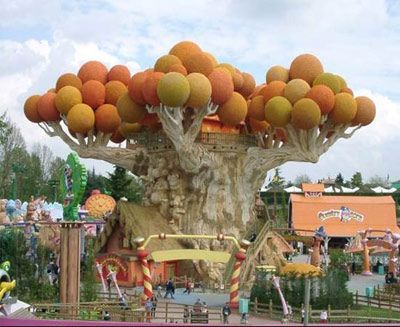 乐园中有许多项目用灯光、演示和动画等特技制造快乐。如“亚特兰迪斯冒险”把游客瞬间提升到21米的高度之后,通过技术手段制造炫目的烟火。
