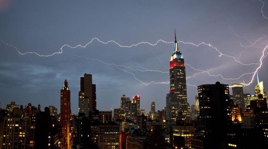 曼哈顿。 闪电光亮极强,持续时间非常短。