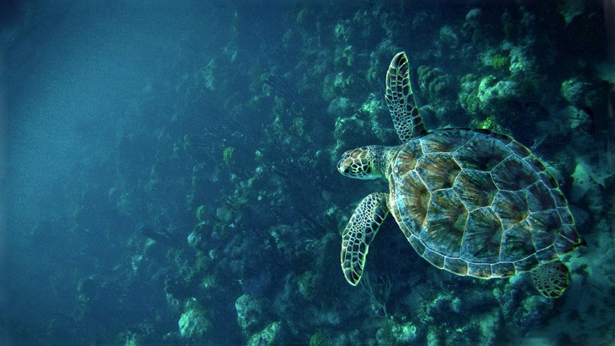 土耳其普罗维登西亚莱斯岛附近海域海底。该海龟在海草河床徘徊,只要不靠得太近,它是允许你尾随拍照的哟!