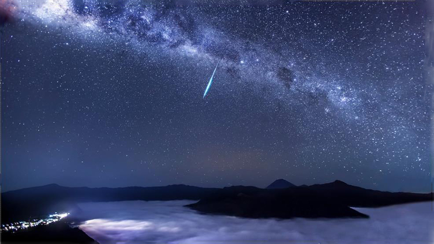 摄于印尼东爪哇岛的布罗莫火山。流星拖着亮闪闪的尾巴,瞬间在星空划亮。星空璀璨,生命若只一瞬,也要在这瞬间活出精彩!
