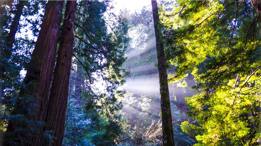 摄于穆尔森林。旧金山北部,太平洋海岸,有这样一片森林郁郁葱葱。当阳光穿透森林铺洒,当迷雾冉冉升腾……