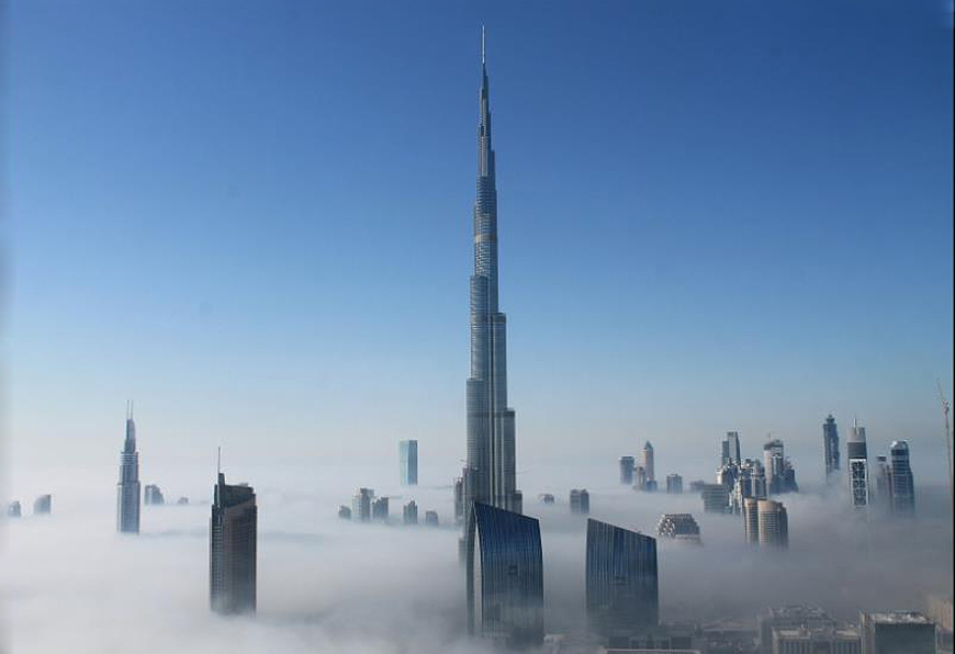 摄于迪拜一50层高的公寓楼,距离地面650英尺(约合198米)。 清晨醒来,却在云霄。虽在现实,恰似梦境。
