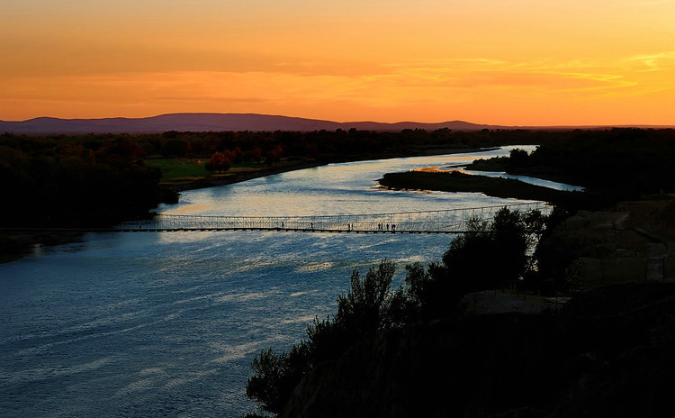 黑龙江 源于肯特山,流经中国、俄罗斯国境,注入鞑靼海峡;黑龙江是一条重要的国际界河。它穿越中国、俄罗斯和蒙古。从海拉尔河河源算起,黑龙江全长4370千米,流域总面积184.3万平方千米;在我国境内的长度为3474千米,流域面积88.7万平方千米。