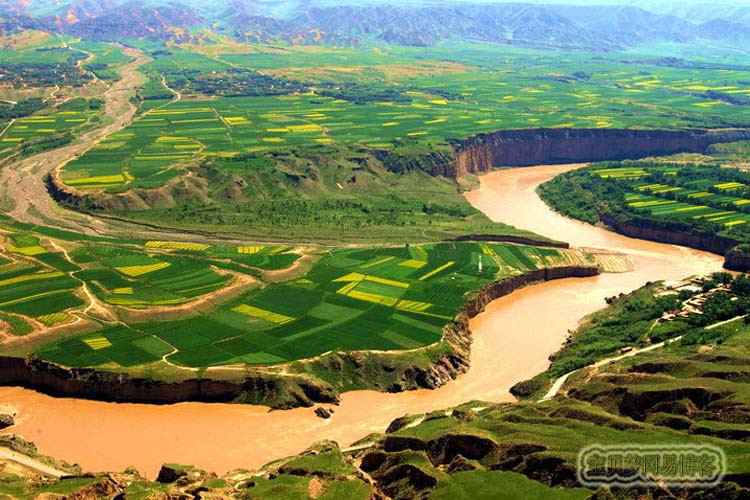 黄河,世界第五长河。全长5464公里,流域面积752,443 平方公里,它发源于青海省的巴颜喀拉山,呈“几”字形流经青海、四川、甘肃、宁夏、内蒙古、山西、陕西、河南及山东9个省,最后流入渤海。由于河流中段流经中国黄土高原地区,因此夹带了大量的泥沙,所以它也被称为世界上含沙量最多的河流。
