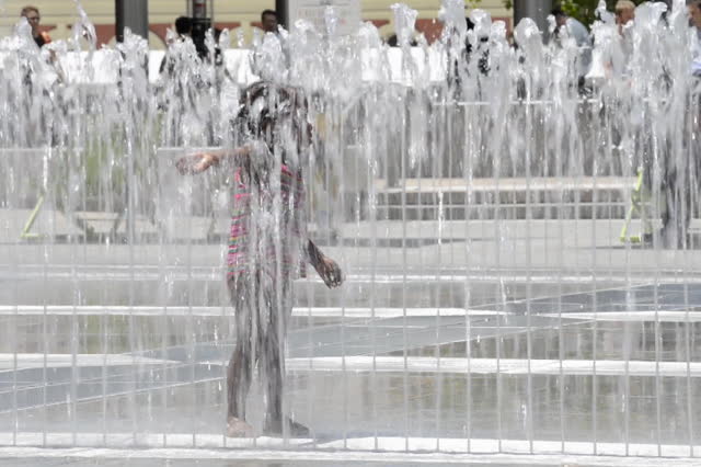 在艺术家杰普·海因设计的珀斯“水迷宫”中嬉戏