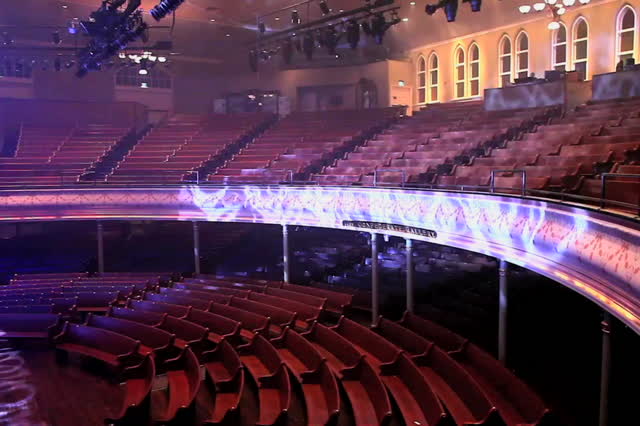 莱曼大礼堂内,为迎接一场音乐会而调试灯光。