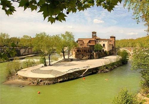 4、意大利罗马的台伯岛(Tiber Island) Isola Tiberina,中文译为“台伯岛”,因为她是意大利的罗马市内台伯河弯曲处的一个船形河中小岛,也是台伯河流经罗马河段的唯一岛屿,它有270米长,67米宽。台伯岛长期以来一直与人类的康复和治疗有关,因为与它相关的负面传说,人们通常避开台伯岛。只有最严重的罪犯和传染病患者被送到这里关押。起初是医术之神阿埃斯库拉皮奥的传说,她摇身变成蛇的样子在此建立了神殿。后来罗马人在神殿的遗址又建起了圣·巴尔托梅奥大教堂,现在意大利人干脆在此建起了现代化的医院。 该岛的观察者也许能辨认出船只淡淡的形状。尽管对出现这种现象的确切性质有各种不同版本的传言,但大家普遍认为,罗马人早在上个千年伊始便添加了能出现航海剪影的石灰华。