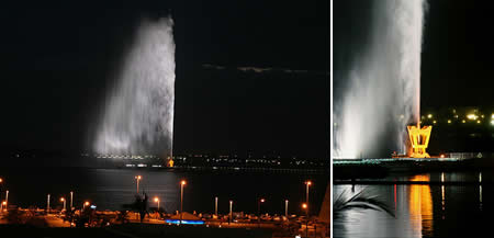 位于沙特西部的港口城市吉达,拥有世界上最高的喷泉——法赫德国王喷泉。它喷射的水柱最高可以达到312米(1023英尺),比著名的埃菲尔铁塔还要高。这样高难度的工作还是得意于它强劲的3台水泵,他们每秒能泵出625升,时速为375千米的水柱。如果来到吉达,就一定不要错过。
