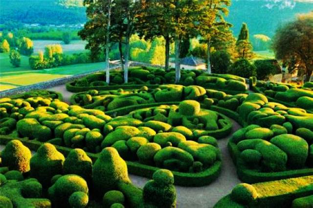 玛琪萨克花园在佩里格尔地区,于19世纪建造,可谓是法国最休闲的花园。它有今日的美丽,完全归功于朱利安德。虽然他没有负责花园最初的建设,却倾尽心血将它雕琢成了一件园艺珍品。花园依山而建,不远处是多尔多涅河。于是,朱利安德从多尔多涅山谷起伏的群山中汲取灵感,用30年时间种下15万棵黄杨,将它们修剪成山峰的样子。从高处眺望,这些植物又像吃草的羊羔,惟妙惟肖,活泼可爱。