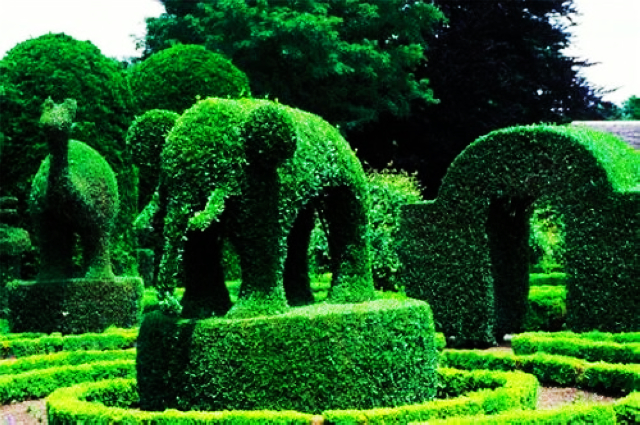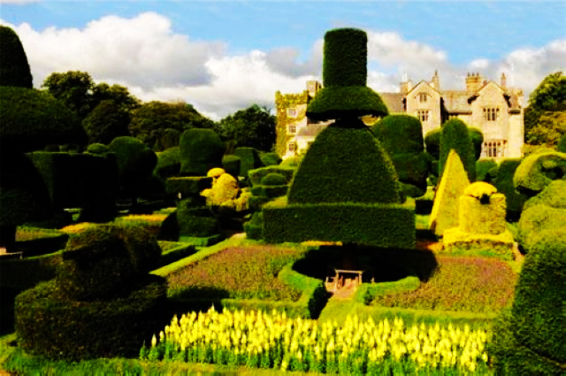 利文斯庄园位于英国北部风景秀丽的湖泊地区,是世界上最老的塑形植物花园。由于17世纪末人们偏爱抽象的几何形状,所以,花园里的植物以圆柱形、三角形、正方形等造型居多。庄园里还有个果园,种着山毛榉、核桃等果树,旁边还有一片修剪整齐的草地,可以玩草地保龄球。