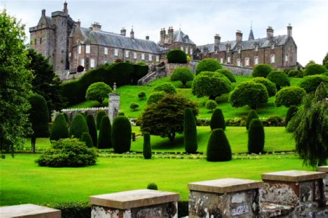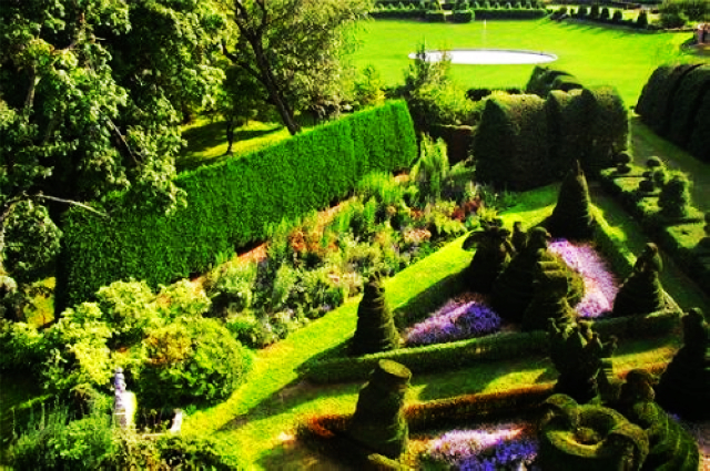 花园在苏格兰的佩思郡,于1490年建造。几百年来,城堡一如既往,还是那么雄伟古朴,花园却随着植物的繁茂生长日异月殊。因为17世纪时几何造型风靡一时,花园的植物造型也体现出当时的审美。这里的灌木被修剪成圆柱形,像是许多高低不等、大小不一的绿色花瓶。路旁郁郁葱葱的矮树篱还形成了一个圣安德鲁斜十字架。不过,花园里也有“另类”。一些树不合群地倾斜生长,像是喝醉了般歪歪倒到。但是,它们的存在并没有破坏和谐,反而打破了花园的沉闷,增添了几分俏皮。