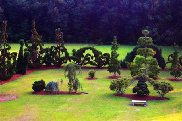 长木花园由皮埃尔·杜邦于20世纪初设计建造,离费城30英里。1906年,皮埃尔·杜邦买下这片土地。之后,看了世界各地的美丽花园,他也想亲手创造一个与众不同的花园。受欧洲造型艺术影响,他将紫衫修建成几何、动物、桌椅等形状。现在花园里有50多棵造型树。