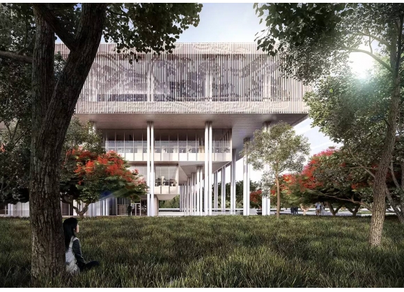 该图书馆是日本Tama艺术大学为了庆祝建校50周年所建造的,由日本知名建筑设计师伊东丰雄设计。校区本身位于东京郊区,山地地形,具体来说,是处在一个开放的公园后,略微倾斜的山坡上,最终形成了 “树”的设计哲学。由于多摩艺术大学之前一直缺少学生和学校职员共享信息的公共场所,Tama艺术大学新图书馆的首要诉求就是考虑如何让图书馆为所有人提供一个开放且兼容自然与人文环境的公共空间。