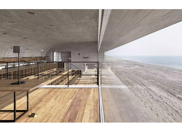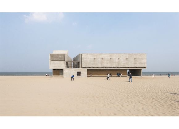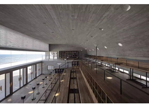 由直向建筑事务所设计的三联海边图书馆,位于沿中国渤海湾海岸线上。该设计的主要理念在于探索空间的界限,身体的活动,光氛围的变化,空气的流通以及海洋的景致之间共存关系。图书馆东侧面朝大海,在春,夏,秋三季服务于西侧居住区的社区居民,同时免费向社会开放。