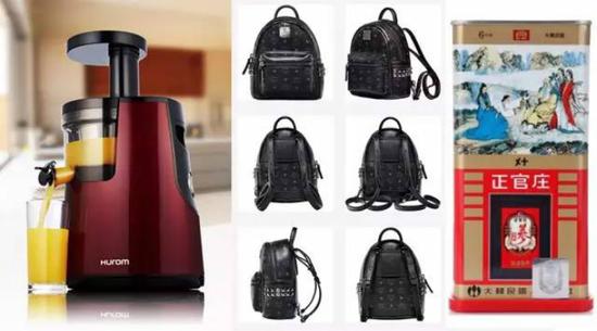 ▷原汁机、MCM、高丽参、韩国娃娃