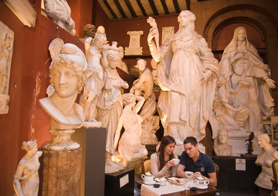 在这间独特的餐厅里,陈列着大大小小的天使塑像,你甚至会感觉自己化身雕塑家的助手。这里曾是杰出的新古典主义艺术家Antonio Canova的工作室,现在是罗马环境最具特色的餐厅之一,这里的菜单包含地道意大利风味,如茄汁烟肉意大利面。