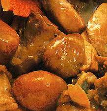 主料∶净野鸡肉500克、板栗250克、肥膘肉100克。