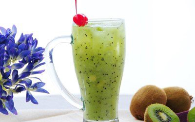 作法:奇异果削皮切小块,与牛奶,蜂蜜及冰块一起打汁即可。