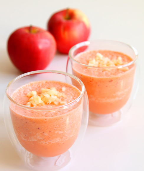 (2)苹果去皮切成小块,全部材料放入如上菜汁中打匀即可。
