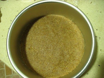 第一步,准备饼底。黄油隔热水化开