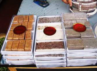 制法:将诸药捣粉,与大米、糯米共放布袋内,再放到笼内蒸极熟取出,放簸箕(或大木盘)内,掺入白砂糖同搅极匀,揉成小块,晒(或烘)干贮存,备用。老年人每日2^3次,每次1^2块。