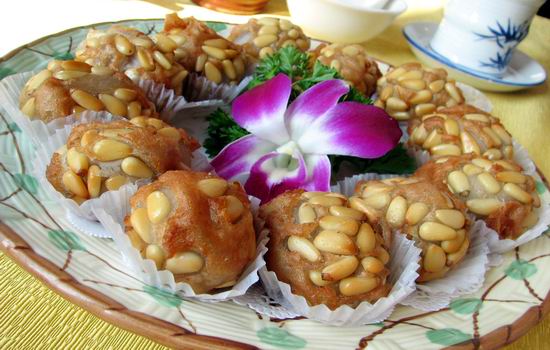 松子清肠润肌肤:珍珠般的松子,在传统御膳中运用广泛,向来被视为有滋补强身功效。松子丰富的油脂成份,不但可以帮助排便,还可以滋润皮肤。