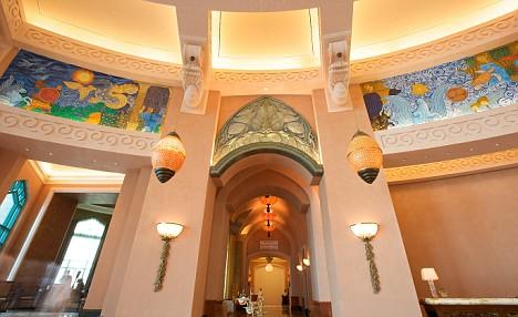 作为巴哈马天堂岛亚特兰蒂斯酒店的“姊妹篇”,棕榈岛亚特兰蒂斯酒店的最大噱头就是“成为一个主打海洋主题的家庭娱乐胜地”。它拥有一个巨型水族缸——养有6.5万条鱼,包括刺鳐和其它海洋鱼类——以及一个可容纳数十条宽吻海豚的海豚馆。让南太平洋所罗门群岛海豚“大搬家”的做法引发很大争议。酒店的顶楼可谓极尽奢华之能事。顶楼套房拥有3个卧室和3个浴室,并有一张可供18人用餐的金叶餐桌,每晚的入住费高达1.3万英镑。