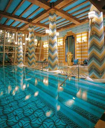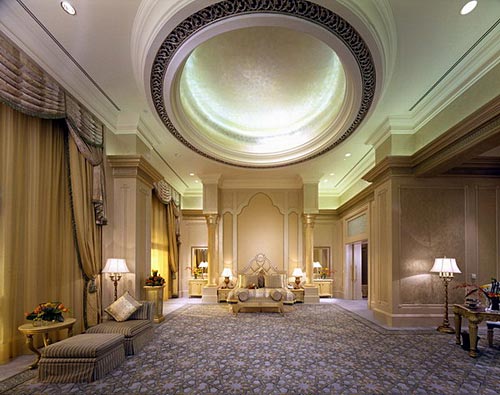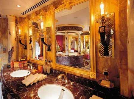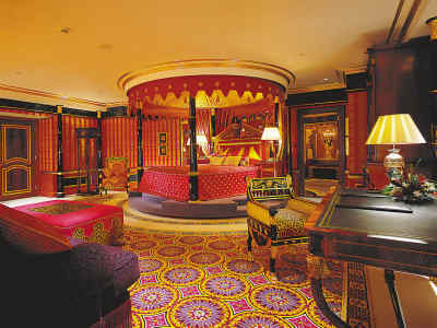知道全世界最贵的酒店在哪里吗?这个问题其实只有一个答案:在迪拜。 迪拜的Burj Al-Arab酒店(burj音译泊瓷,又称阿拉伯塔)。 迪拜是阿拉伯联合酋长国的第二大城市。20世纪50年代,它还是阿拉伯湾一个朴素的海滨小镇,到了90年代以后,迪拜发生了脱胎换骨的变化。鳞次栉比的摩天大楼在霍尔河畔奇迹般地崛起,让人以为自己仿佛到了纽约。像其它中东城市一样,迪拜因石油而富庶。但对一个雄心勃勃想在新世纪大展身手的新兴城市来说,石油当然不是全部。它打开了大门,大力发展旅游业。由于拥有高素质的环境以及丰富多彩的文化(因为80%的人口是外国人的缘故),到迪拜的旅游者以模特、艺术家、商人等高收入阶层居多。在迪拜王储的提议之下,知名企业家Al- Maktoum 投资兴建了美仑美奂的Burj Al-Arab(迪拜的伯瓷)酒店。 有人说,阿联酋人擅长做梦,而且荷包里装满美元的他们总能把梦兑现。迪拜的伯瓷酒店就是一个典型的例子。它富丽堂皇,奢华至极,超出世上现有酒店星级的水准,外界干脆将其评为“七星级”。记者下榻过不少世界驰名的酒店,唯独伯瓷酒店的张扬个性,给我留下的震撼最难忘。 图:酒店楼顶的“空中网球场”,距地面300多米 房间预约排到3年以后 抵达迪拜,记者第一个要去的地方便是这个号称用黄金打造的城池。伯瓷酒店(意思是阿拉伯塔)于1994年建成。酒店建在离岸280米的人工岛上,共有56 层。新月状的外廓展现着浓郁的伊斯兰风格。远望又像只鼓满了海风的帆船。楼高321米,我猜想这是非要与埃菲尔铁塔(高320.7米)比高低不可。 参观当天,烈日当头,口渴无比,记者只得在伯瓷酒店里买了瓶矿泉水,结果付费20迪拉姆(约合人民币42元)。陪同记者的迪拜朋友说:“对睡眠和饮食要求不高的普通人,是铁定不会花大钱在这里住的,况且酒店房间的预约最火时会排到3年以后。”在以前,如果你有朋友是酒店俱乐部的成员,就可以让他带你进入酒店免费参观。不过现在想进酒店大门都得购票了,每人100迪拉姆(约合人民币210元),假日则要双倍价钱。 与酒店外表一袭清纯白色外衣不同,伯瓷的内部极尽奢华。走进大门,当偌大的“宫殿”呈现在眼前时,我突然有种惶惑,可能是辉煌的东西总给人压迫感吧。据说在伯瓷,凡眼睛判断为金色的东西,定是黄金无疑。大到厅里的巨型柱子,小到门把、家具手柄、水龙头、电话等等,都用黄金装饰得优雅而不落俗套,以至于记者看见镀金的留言纸时,已没什么强烈感觉了。据说,酒店当年装修耗金30吨。如果当真,扣除大堂、餐厅等公用部分的消耗外,每套客房的含金量至少也有几十斤。 从机场到酒店乘直升机 对于一个沙漠之城,水比黄金要金贵得多,而在伯瓷酒店里却看不到一点缺水的困窘。金龙头下哗哗流水,遍处丰盈的绿色植物,透过露天喷泉喷涌而出的巨大水柱,让记者看到了什么是富得流油。据迪拜朋友说,为了保证酒店的地基稳固,共有250根基桩打入海下40米的深处。这些事实让人没法不好奇:建成这座酒店花费究竟有多大?可惜至今没有确切数字被披露。 客房内部非常豪华 据迪拜朋友讲,入住酒店的客人,一出迪拜机场就有酒店提供的两种“豪华选择”:坐劳斯莱斯豪华轿车过去,或是乘直升机。乘机前往的话,在15分钟的航程里,可以从高空鸟瞰迪拜市容,然后徐徐降落在酒店28层的直升机停机坪上。当然,这种高档享受是要付出高昂代价的。在酒店的楼顶,还有一个世界独一无二的 “空中网球场”,它由直升机停机坪改建而成,距地面300多米。著名的网球选手费德勒和阿加西,就曾为备战迪拜男子网球公开赛,在这里打过友谊赛。 伯瓷酒店既然称为“七星级”,房价当然也超乎寻常。记者在酒店看到公示的价目:标准房每天900美元,皇家套房每天18000美元。实际上这是淡季的最低价,按这个价格往往是订不到房的。据最新报价,今年四季度最低房价为1400美元,辞旧迎新之夜更是一房难求,房价高达3775美元。就是说,花上3万元人民币能在迪拜目睹2008年的曙光。酒店房价虽然不菲,客源却依然踊跃。“不怕价高,只怕货差”,这句商界名言在迪拜再次得到印证。 酒店爱招中国员工 记者得到许可在酒店参观一番。伯瓷共有202套客房,所有的客房都是两层楼的复式结构。房间面积最小的也有170平米。一进门,一位工作人员便拿出一个超级遥控器给记者看。原来这个遥控器能控制房门、窗帘、电视和DVD等许多设施。不过感觉界面颇为繁复,不太容易操作。记者还意外发现墙上“挂”的时钟竟然不是实物,而是一个投影,不过时间显示分秒不差。投影本身不稀奇,但和室内的现代气息配合得恰到好处。 皇家套房大得吓人,足有780平米,摊开来的话,面积相当于两个篮球场。套房的设备更让人咂舌,里面竟然有私家电梯和泳池。屋里的摆设都是世界各地的珍宝,睡床还能旋转。让人叫绝的是卧房的天花板上,装有一面与睡床相映成像的大镜子。 伯瓷酒店现在的员工大约在一两千人,菲律宾人最多,其次是印度人。在酒店服务层很难遇到一位迪拜本地人。“迪拜本地人太富裕,根本不会从事服务业。”一位酒店服务人员对记者说。据他介绍,还有几十名中国人在酒店工作。招募如此多的中国员工一是因为中国人力资源丰富,另外去迪拜消费的华人越来越多,也是一个重要原因。