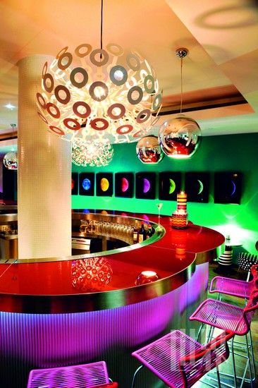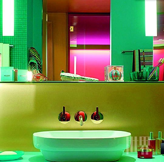 Missoni的作品,只是这一次的载体不是针织衫,而是酒店。大堂、走廊以及电梯等公共空间将多种明亮的色彩大胆地运用到极致,紫罗兰、橄榄绿、明黄、藏青……房间内的装饰风格摩登艳丽,却不失简约亲切。白色的墙壁和天花板,在视觉上弱化了多种绚丽色彩所产生的凌乱和强度,床单、靠枕、窗帘、浴袍和拖鞋,全部都是夺目的Missoni风格,就连咖啡杯也是黑白相间的条纹图案,让人爱不释手。