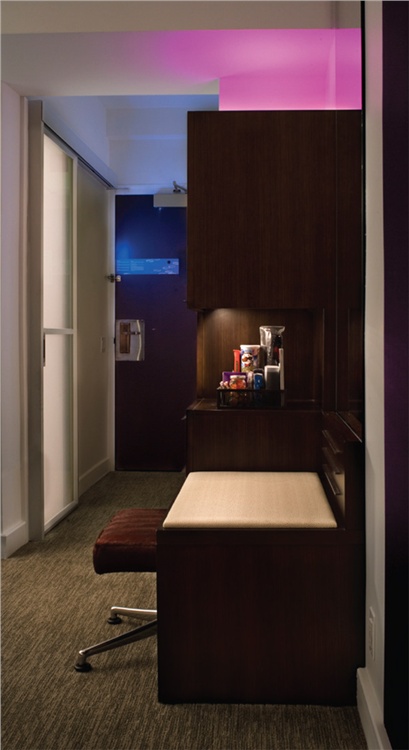 通过比例、透视和图形的使用,每间客房的设计,都是一种对大自然的巧妙现代诠释。豪华的睡床,包裹在温暖的斑马木里,是房间的一大亮点,让人们更加感觉身心放松。Wow 设计元素包括特别定做的床头板,背透夜光,活色生香的照片,暗示着美丽的人体轮廓或曲线。所有客房都带有独具创意的多层工作区,包括一张时髦的木制写字桌,桌上是一块旋转玻璃板,可以让房间里有更大的工作空间。工作区域现代、时尚,且高度实用,对于入住 W 酒店的旅客,从午夜电子邮件交流到深夜的夜宵,他们的多种需要都可以得到支持。此外,每间客房为住客们提供了各种娱乐项目,可以选择 W 酒店招牌式的 Munchie Box、Tivoli 电台和 iPod 底座,以及安装在旋转底座上的大屏幕平板电视 -- 确保在房间里任何地方都能有舒适的角度观看电视。