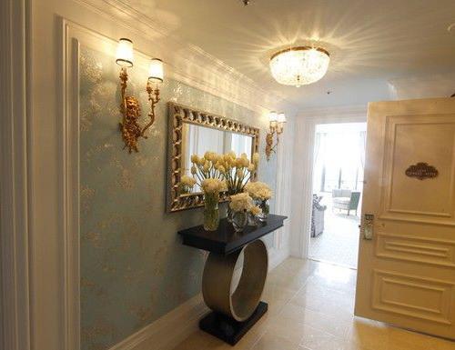 华丽的水晶灯与精致花纹的沙发都很有味道