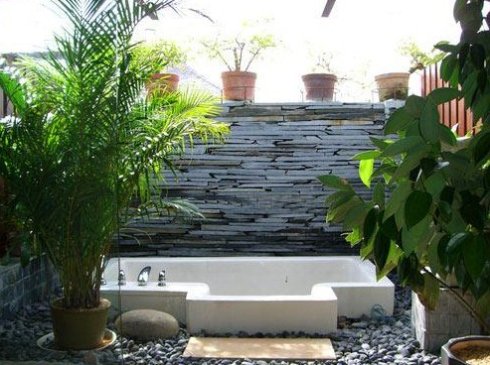 这是每间别墅房自带的开放式温泉按摩泡池.外边是绿意盎然的植物,完全私密空间与大自然接触.也可以拉下帘子闭目养神.超惬意的享受。