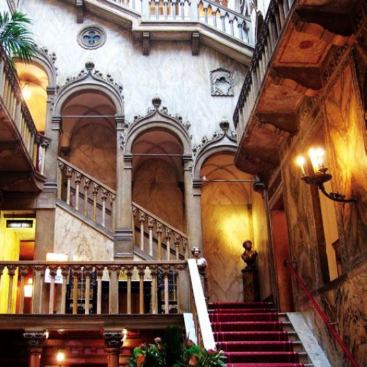 经典翻拍加大牌联手让《游客》在2010年底北美票房大热。虽还未在国内上映,影片中各迷人细节已在网上蹿红。拍摄地威尼斯和Danieli酒店一向是好莱坞最爱的取景地之一,Johnny Depp与Angelina Jolie两位天生复古的演员将此地中世纪之美诠释得新鲜刺激。Danieli酒店由Palazzo Dandolo、Palazzo Casa Nuova、Palazzo Danieli Excelsior三座宫殿组合而成,其中 Dandolo宫本身就是华美到无以复加的十四世纪艺术品,Jolie所住的总督套间中居然还挂着考古队一直寻觅着的中世纪壁画。两人晚餐时周围聚集的西装燕尾服客人可不是群众演员,酒店本身就是意大利名流夜夜笙歌之地。就连影片中光头反派提到的另外两家酒店也非平庸之辈,一家是始建1525年的 Gritti Palace(当时总督官邸),另一家 Westin Europa & Regina则是两座相连小楼铸就的美妙行宫,单是迷宫般的入口和粉红色外墙就让人动心。片中Depp在酒店check in时拿到的房卡是一个很重的铃铛形状铁块,上面还系红穗子,典型复古酒店风格。据说当地所有酒店房内都没有烧热水设备,因为一旦着火当地交通没有条件调来灭火队。在这里行凶,是插翅难逃还是天时地利?