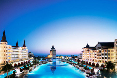 马尔丹宫酒店是土耳其海滨一座极致奢华的高档酒店,其中设有水疗中心、主题公园、占地16000平方米的巨大泳池、仿真的伊斯坦布尔地标和一片由9000吨埃及进口细沙覆盖的私人沙滩等。而其著名的水疗中心则向旅客提供着价值700美元(约合人民币4351元)有助于血液循环的香槟浴等休闲设施。