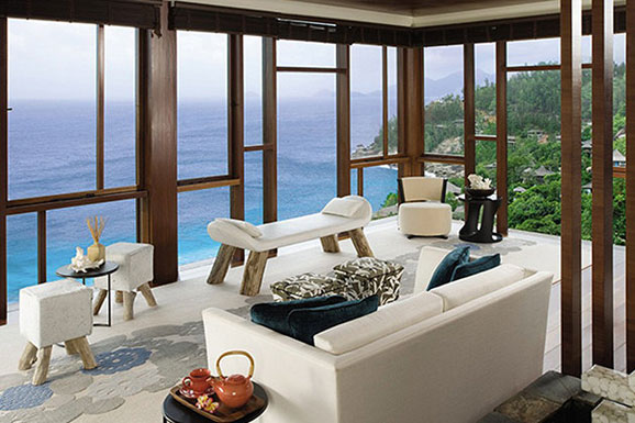 塞舌尔的四季度假村位于山坡上,这意味着你和你的伴侣有机会享受到迷人的印度洋风光和白色的沙滩。该酒店的67幢别墅都非常豪华并且相互独立,每幢别墅均有一个巨大的深水泳池。如果不想继续沐浴阳光,你们还能在600平方英尺(约55平方米)的图书馆里细细品味舌赛尔和克里奥尔的文化。