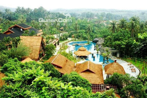 推荐理由:处在海南七仙岭温泉国家森林公园内,一家少数民族风情的酒店,由一栋栋独立的别墅构成。两边的路上种满热带植物。木质的房屋很大,也很干净。打开楼台的窗户,是一片原始森林。在房间外的阳台上还有一个大大的浴室,你可以享受天然的温泉。这里最大的特色就是泡温泉。