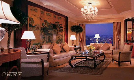 位于九龙香格里拉大酒店十九楼的总统套房,面积二百一十五平方米,座拥着名迷人维多利亚港景致。主人客房内有特大睡床及35寸等离子电视机。睡床侧的控制壹让宾客随意开关窗帘,欣赏窗外的璀璨维港景色。佑大的浴室铺上光亮白色云石及度金水龙头,设有站立式花洒、按摩浴池、坐浴盆及私人液晶体电视。厨房的设施一应俱全,备有冰箱及微波炉,足以招呼多名亲友作客。餐厅则陈设高雅,椭圆形的桃木餐桌配上多张装上软垫的坐椅。