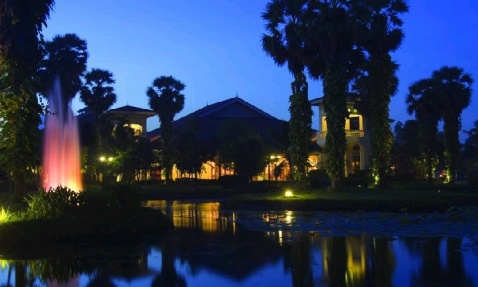 索菲特吴哥皇家酒店周围环境幽静,有繁茂的热带花园庭院、湖泊、游泳池……还有一个去年七月才开幕的18洞高尔夫球场。