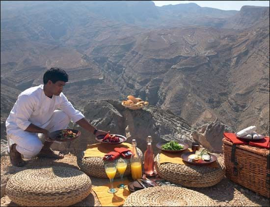 阿曼的Six Senses,它一边靠海,一边是巨大的岩石山